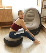 Comfortable Inflatable Air Sofa with Floor Rest for indoor and outdoor relaxation. Easy to inflate, durable, and perfect for lounging anywhere.